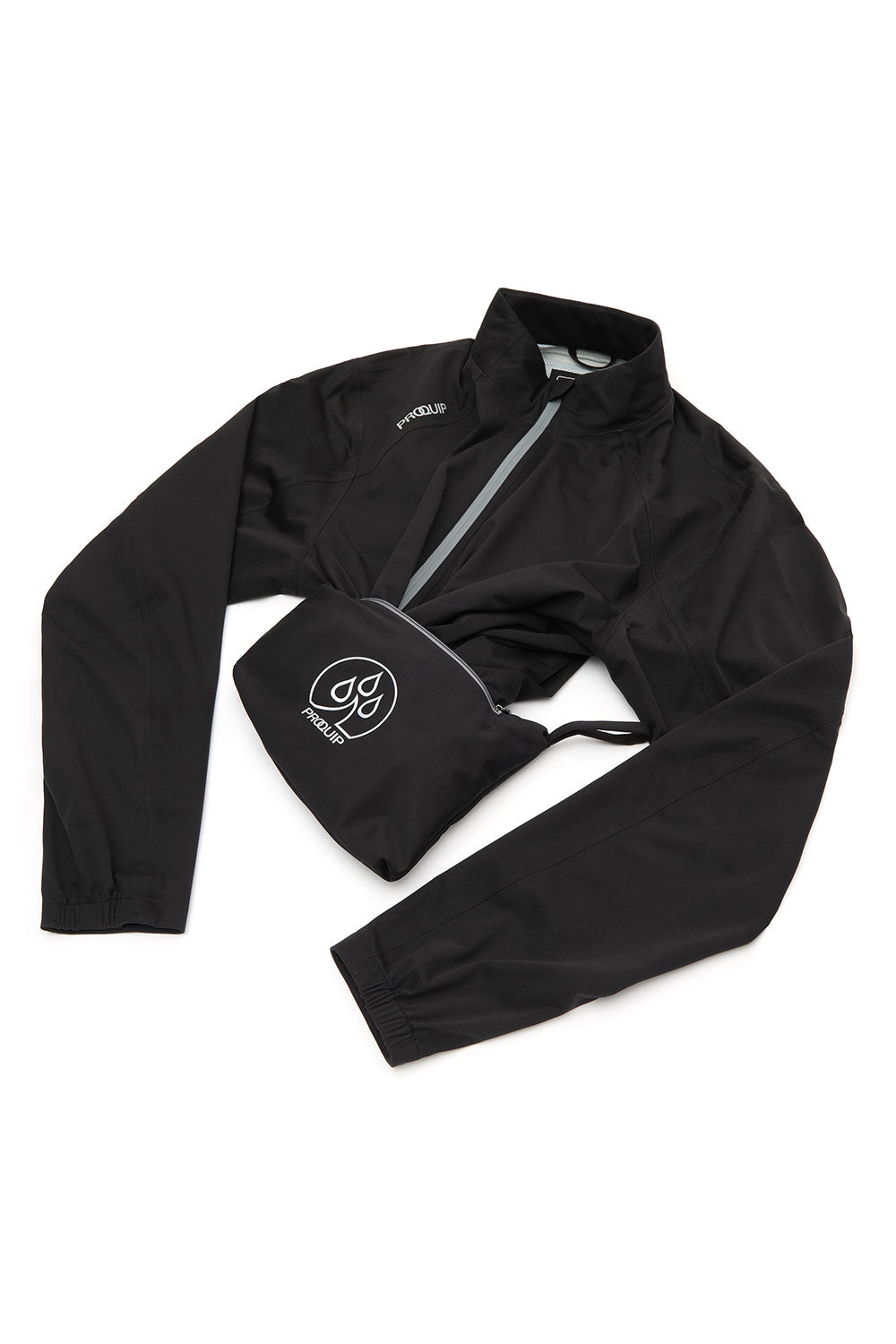This PROPAC-LITE golf jacket weighs 263grams and packs into its pocket for easy storage.