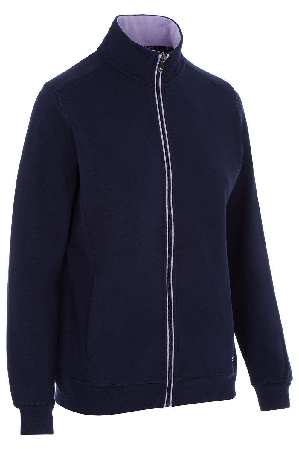 ProQuip Ladies Millie sweater is a full zip sweater designed to keep you warm on the chilly golf days. The material has a supersoft feel made from Polyester cotton for exceptional comfort. This has a natural stretch to allow a full range of movement limiting distractions. Complete with leather zips and 2 pockets, this is an ideal sweater for both on and off the golf course.