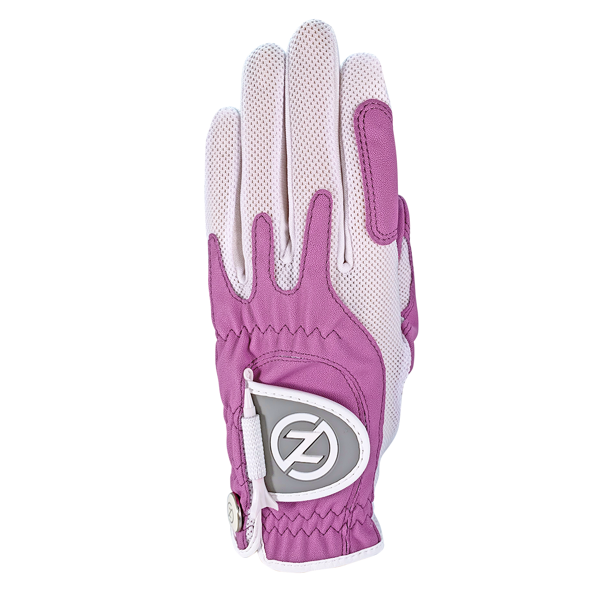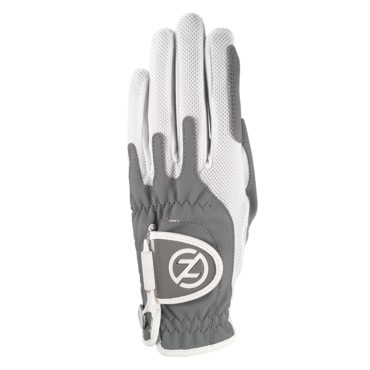 Count on Zero Friction Performance Golf to design a Superior Golf Glove using Compression-Fit Technology. Features: - All-Weather Synthetic Digitized Palm and Patch - Detachable Ball Marker - Holds Shape Longer - Smooth Palm for Maximum Feel - White Mesh Lycra Throughout Finger, Back of Hand and Palm for Breathability - Includes (1) Free ZFV 5-Prong Performance Tee